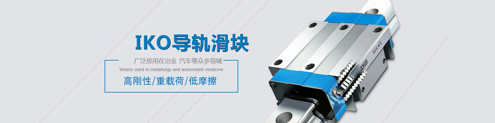 主要經營:THK直線滑軌、IKO直線滑軌、直線軸承、花鍵、臺灣上銀直線滑軌、滾珠絲杠、Rexroth(力士樂)直線滑軌絲桿螺母NB滑軌、直線軸承、滾珠花鍵、米思米直線系列產品KG齒輪、EASE直線軸承、以及直線導軌滑塊附屬產品:油脂、滑塊配件等。各類產品渠道正規,現貨充足。產品廣泛應用在冶金、電力礦山、機械制造、食品、醫藥、汽車、紡織、化工等眾多領域。